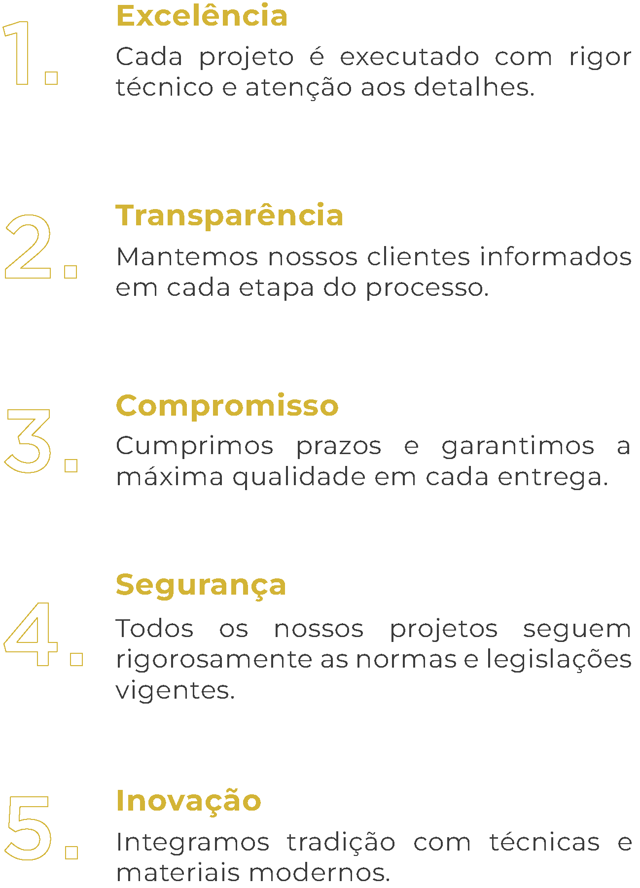 Queremos continuar sendo referência no mercado de construção e reformas, oferecendo aos nossos clientes soluções que inspirem confiança e satisfação. Nosso objetivo é ser reconhecidos não apenas pela qualidade dos nossos projetos, mas pela forma como cuidamos de cada cliente.